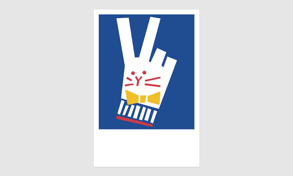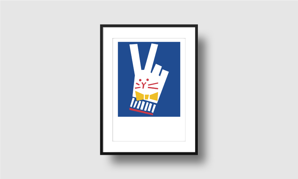 2枚目:軍手でピースする姿を、うさぎに見立て、身近に幸せがあることを表現。
