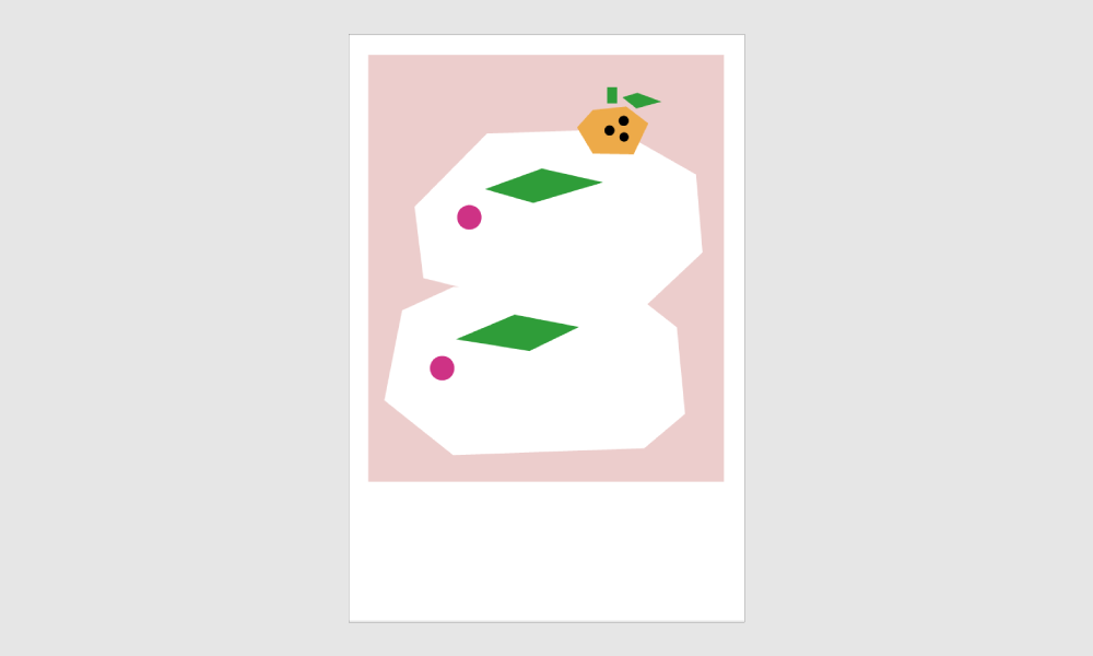 3枚目:雪うさぎを鏡餅に見立てた。雪が解けて、春の訪れを感じさせる仕上がりにした。