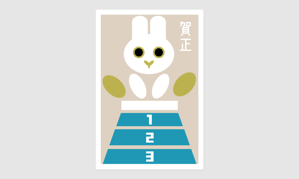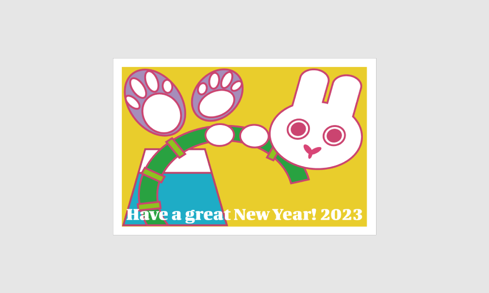 2023年・卯年の年賀状を制作。年賀状を受け取る方が、ほっと和んだり微笑むような、柔らかさのあるものを心がけた。